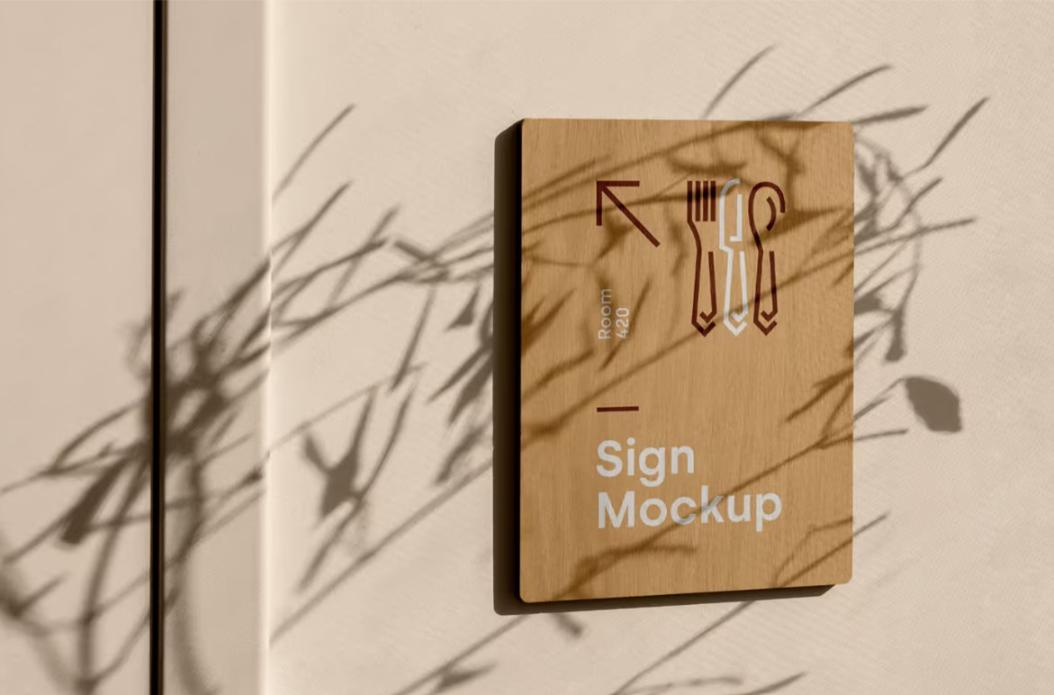 This is a high quality wood sign mockup psd that allows you to check the restaurant branding designs in a professional way. This mockup psd is designed by using high resolution photo of a wood sign on the wall that will give a high quality look to the scenes. The plant shadow effects on the wall will give a minimal and professional look to your presentation needs. In this mockup you can replace the branding design on the sign easily by using the smart layers feature. You can change the color of both wall and sign according to your need.